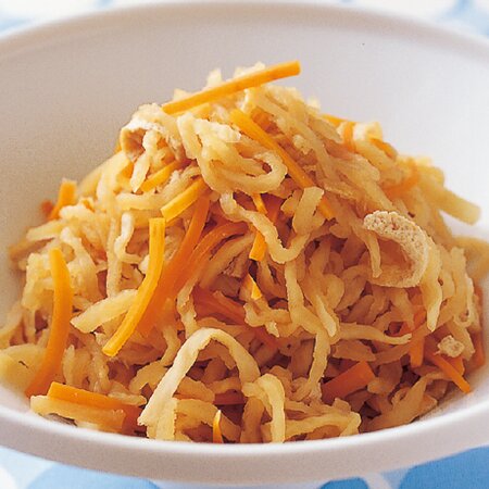 おいしい日本のだしの風味を効かせた、切干大根と人参の煮物です。カルシウム、鉄分、食物繊維も豊富です!